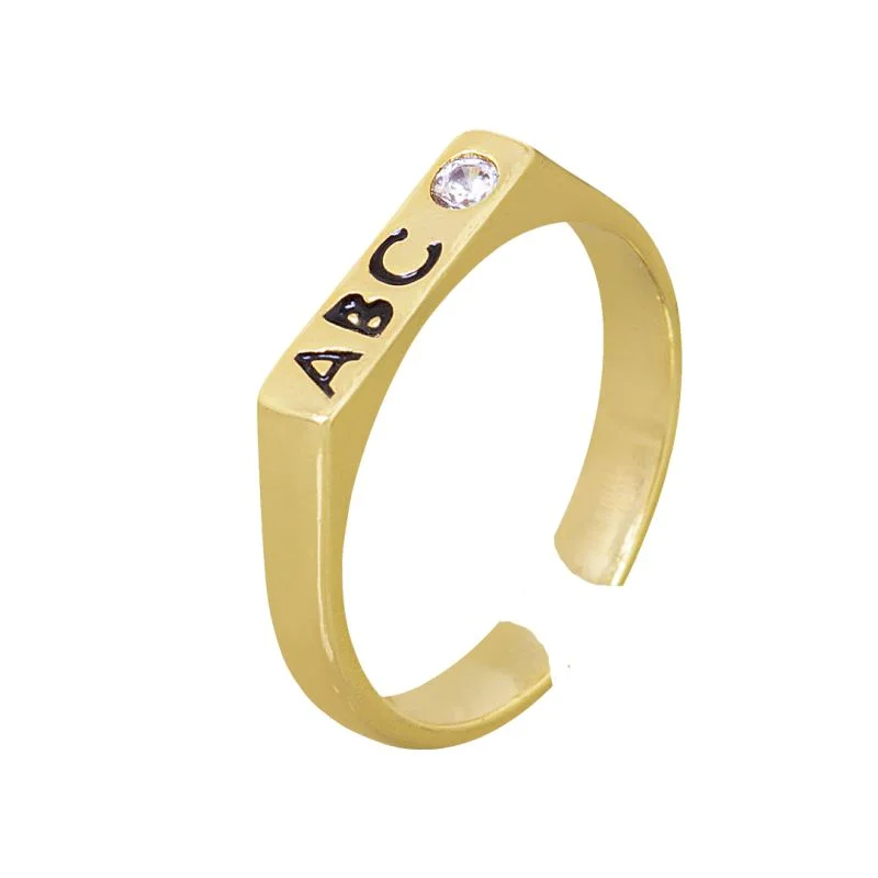 ANEL ABC COM ZIRCÔNIA CRISTAL – BANHADO EM OURO