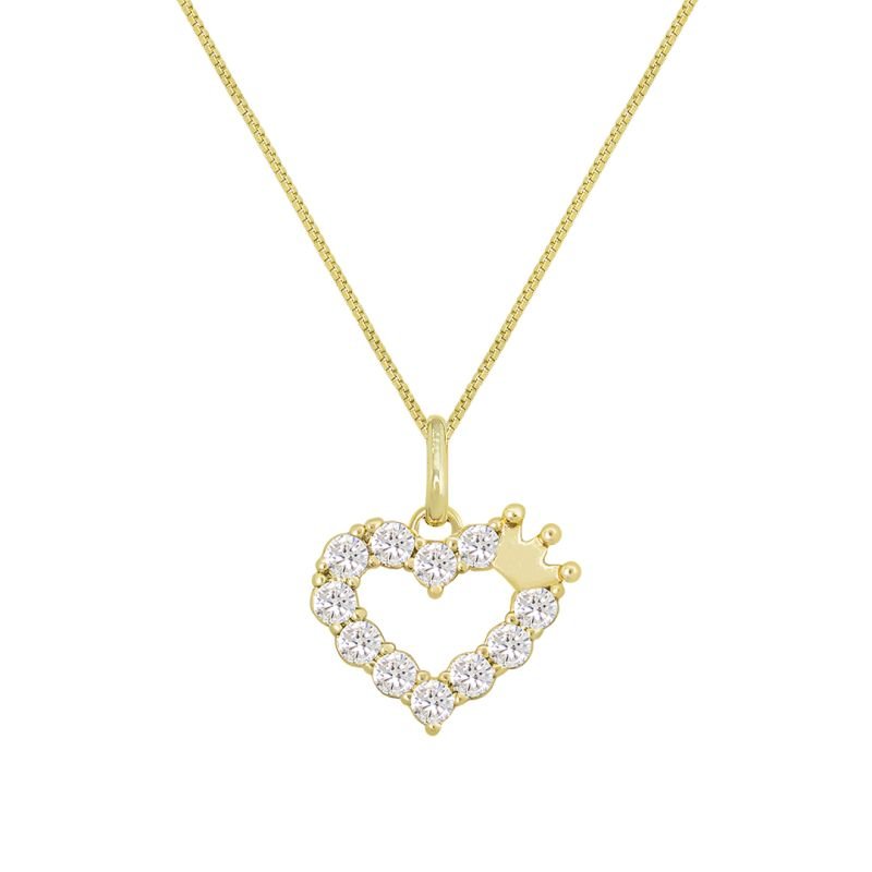 3. COLAR INFANTIL CORAÇÃO CRAVEJADO DETALHE COROA BANHADO EM OURO